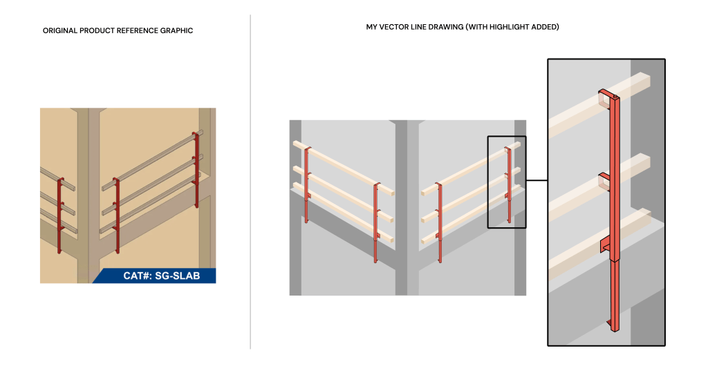 My technical illustrations simplify complex products or processes so the viewer can grasp the “how” and “why” of a product at a glance. I can bridge the gap between showing precise details of a product while also giving simplified understanding of its use through utilizing exploded views, cutaways, and cross-sections.